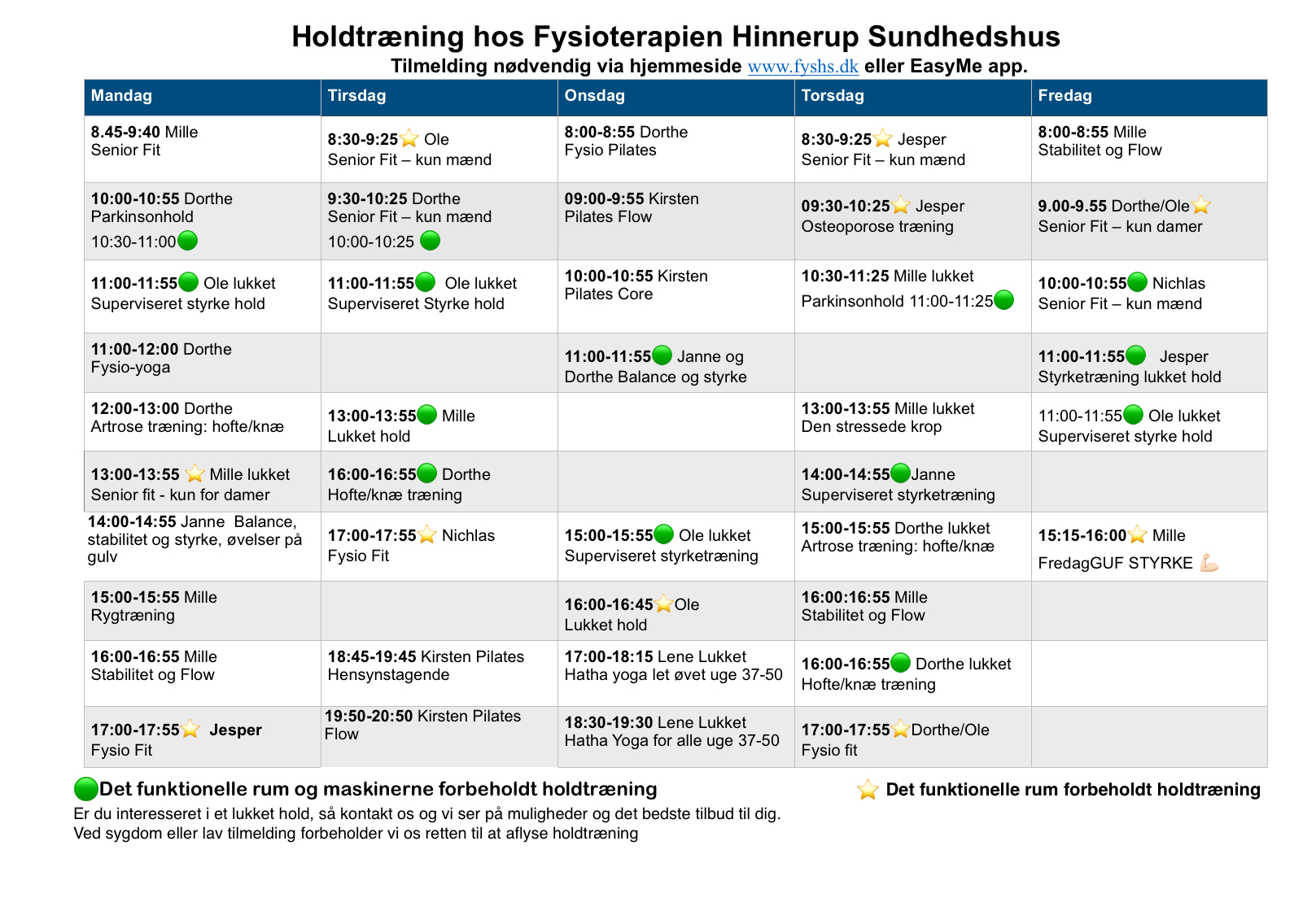 Lukket hold, for deltager som har behov for en hånd ved styrketræning. Der er åben for alle at træne i tidsrummet, men vi kan godt fylde lidt meget. Er du interesseret i at komme på lign hold, så kontakt os 26362789.